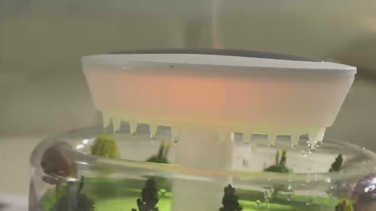 Lluvia Terapéutica: Su característica estrella es el suave goteo de agua simulado, que emite un relajante sonido de lluvia (Pluvial). Perfecto para meditar, leer o simplemente conciliar el sueño en minutos.